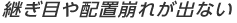 従来のエッチングの加工プロセスでは発生した柄切り替え線や継ぎ目の目立ちがなくなり、幾何学模様の継ぎ目や著しい配置崩れが出ない。